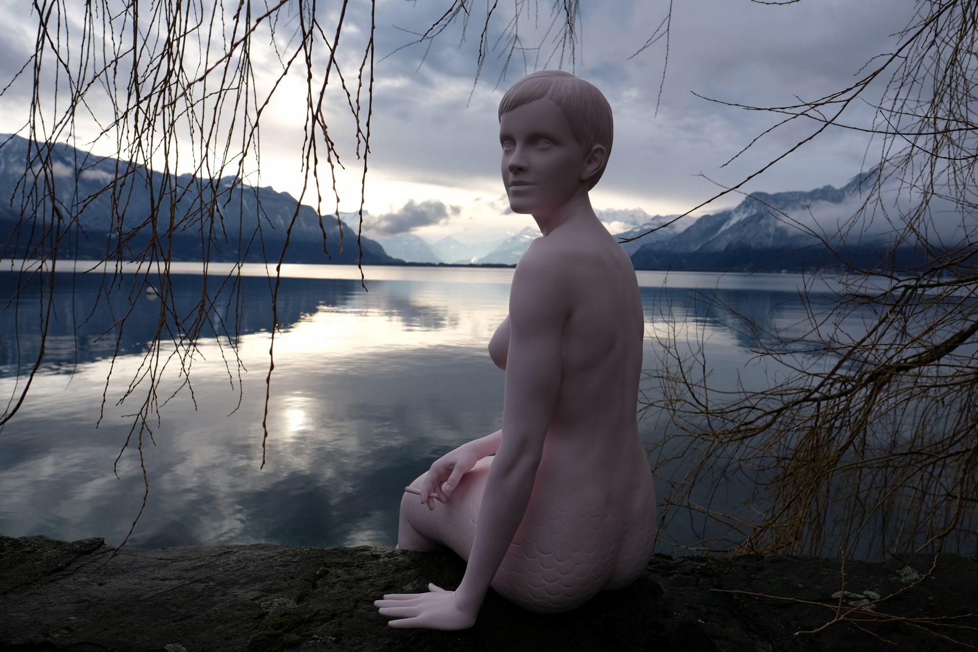We decided to present our explorations and works in an online exhibition that will be hosted by my Berlin gallery under the title La Léman, referencing the lake and its status as a rich source of inspiration for many past artists and poets. I will present an existing mermaid sculpture that I photographed by the lake and a new landscape painting that I airbrushed with oil paint in my studio, based on a tree motif by Van Gogh but using the beautiful colour scheme of the Lavaux region in early autumn. Shoemaker will present framed watercolours of the lake.